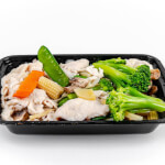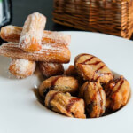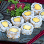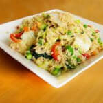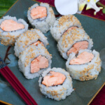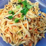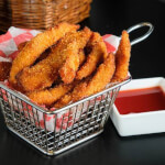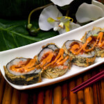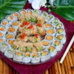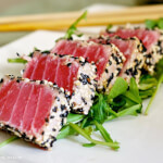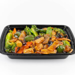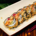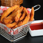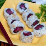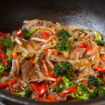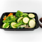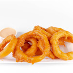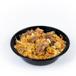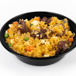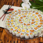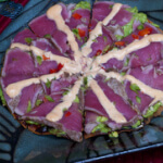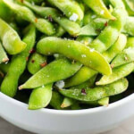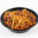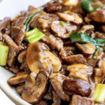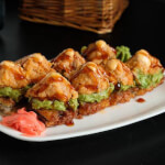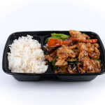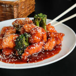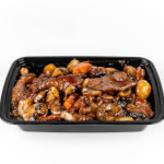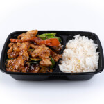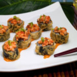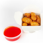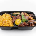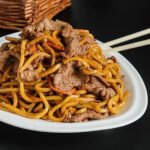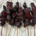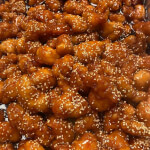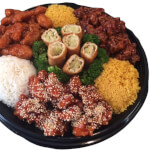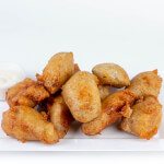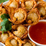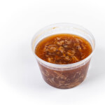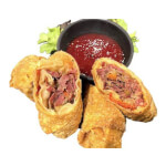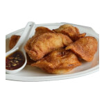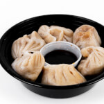 Pan seared beef dumplings with a ginger soy sauce. Feeds 10-15